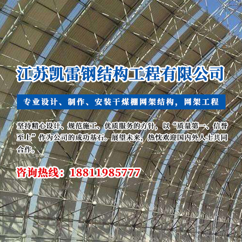 江蘇凱雷鋼結構工程有限公司是專業(yè)設計、制作、安裝干煤棚網(wǎng)架結構,煤場封閉料倉網(wǎng)架,及其配件的企業(yè)... 查看詳情